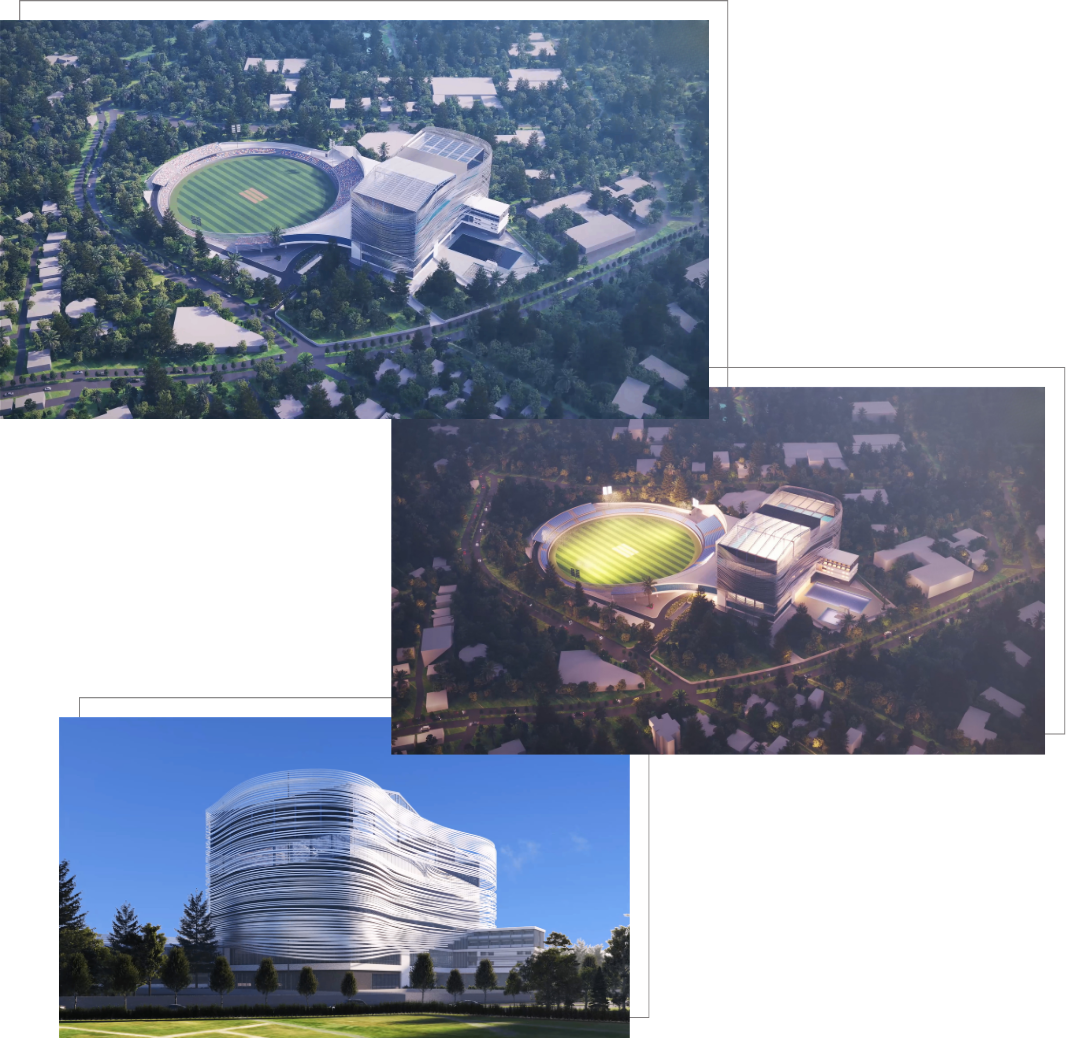 The proposed sports complex is a high-end facility with a 1,140-seat stadium, VIP access, and exclusive dressing rooms for cricket teams. It includes specialized halls for various sports, luxurious changing rooms, first aid and consultation rooms, a multipurpose hall, a premium cafeteria, an indoor gaming lounge, and a rehabilitation center. Additional features include separate dormitories, VIP rooms, outdoor sports courts, a kids’ play area, an outdoor gym, and a reflexology pathway, all set in a beautifully landscaped environment with cutting-edge infrastructure.
