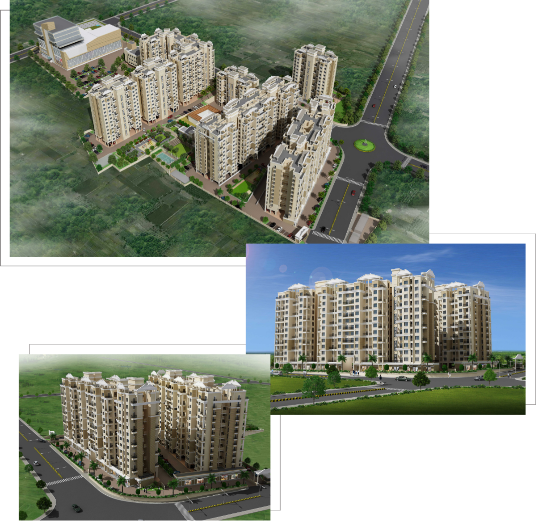 The residential complex includes 3 residential towers with 2 and 3 BHK apartments as well as 2-row houses with ample green space, a clubhouse, and other amenities over Podium.